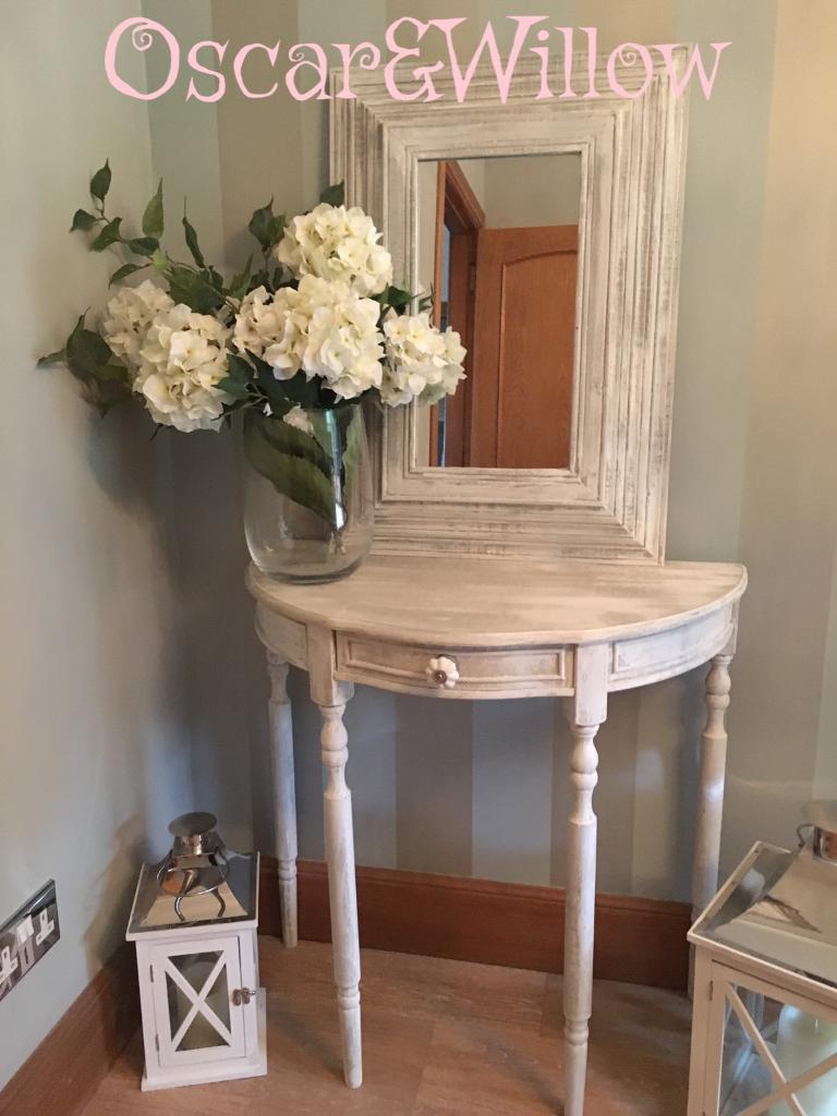 Half Moon Table And Mirror Sets - Olive green hand painted half moon console hall side table ... - Amazing gallery of interior design and decorating ideas of half moon table in dining rooms, bathrooms, entrances/foyers by elite interior designers.. Vintage + modern entry table decor with circle mirror. Organize some free space at the entryway: Goddess blessed chakra gemstone set polished selenite rainbow crystal healing. Half moon features a cylindrical steel base with a slim profile but a weighty feel. Would make a great telephone or hallway table featuring one drawer with silver painted wood.